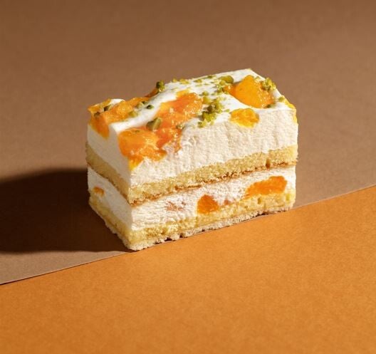 Zwischen einem röschen Mürbteig und zwei zarten Biskuitböden liegen saftige Mandarinen in einem erfrischenden Joghurt-Mandarinen-Rahm. Locker-fruchtig! Dekor: Mit Mandarinen abgedeckt. Fertig gebacken, tiefgefroren, geschnitten und einzeln entnehmbar.